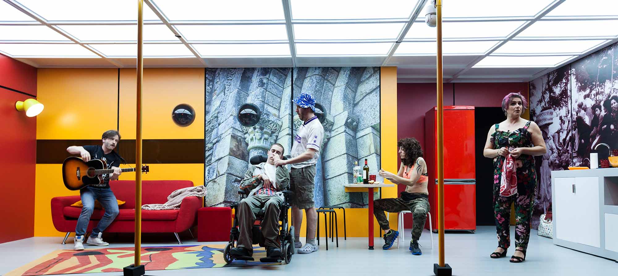 Esa adaptación nace quizás de una pregunta: ¿dónde está hoy el mayor de los esperpentos? En Gran Hermano, sin duda. De ahí que, emulando al programa televisivo, se le haya añadido al título lo de ‘Revolution’. Detrás de esta irreverencia están las gentes de la compañía Chévere (Premio Nacional de Teatro en 2014), que bajo el paraguas del Centro Dramático Galego introducen a los actores en una casa prefabricada, sin ventanas, donde se cuenta cómo la hermana y la cuñada de Xoana, tras su muerte, se disputan la custodia del hijo huérfano pensando más en los beneficios que pueden obtener que en el bienestar del niño. Un retablo de avaricia, lujuria y muerte en vivo y en directo, replicando un formato realizado igual en mil televisiones de mil países, la aldea global a la que accedemos por la pantalla.