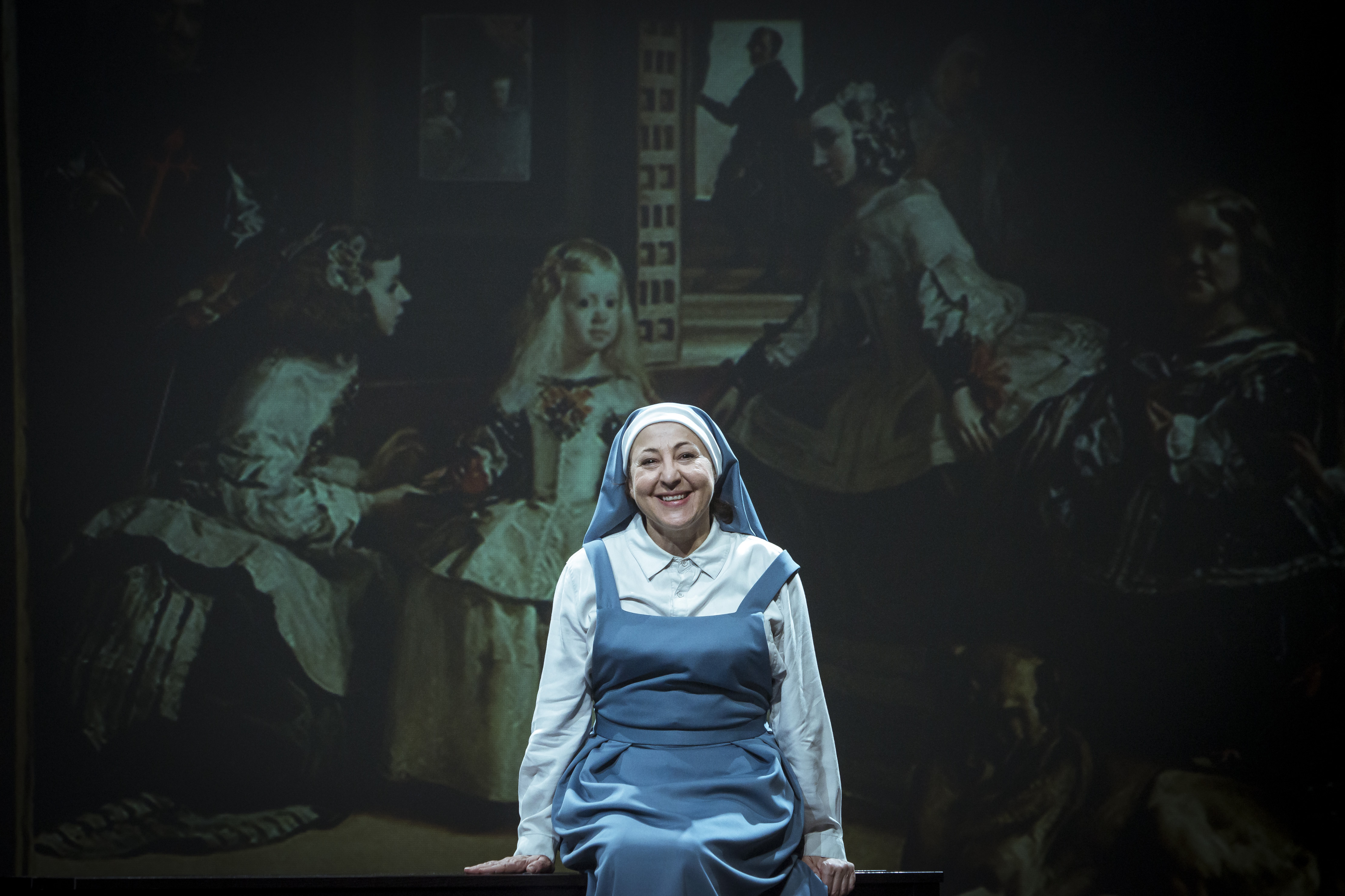 El otro tema principal de la obra tiene que ver con el arte y con la condición de artista. La pintura y su historia está entre las pasiones confesas de Ernesto Caballero, que además se licenció en Historia del Arte. No es casual la elección de una monja copista, como tampoco lo es la elección de un cuadro como Las meninas, una obra en la que, por vez primera en la Historia, su autor se reivindica como artista, formando parte de la propia obra. Enfrente tiene a una artesana cuya individualidad, por su condición de monja, queda diluida, y por su condición de copista tiene una relación con el arte artesanal, de artista sin conciencia de serlo. “Todo esto -explica el director- me servía para reflexionar sobre cómo ha cambiado la modernidad la propia condición del artista, reivindicando su subjetividad. Por eso surgen las vanguardias tras el Romanticismo, herederas de esa reivindicación de la individualidad creadora. Esta monja se ve tentada en la noche, mientras trabaja copiando Las meninas, por el vigilante del Museo del Prado y va despertando en ella esa pulsión. En ese sentido, en la función surgen arrebatos y trances de posesión, que en este caso no es demoníaca, sino vanguardista. Igual que en El exorcista la poseída profiere latinajos, Ángela, nuestra monja, lo que dice son manifiestos futuristas. En un momento dado se ve como transformada en una suerte de Marina Abramovic. Es un juego teatral muy divertido que Carmen Machi despliega con brillantez, como no puede ser de otra manera”. Claro, es que la Machi… ¡es mucha Machi!
