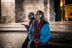 Quijotes y Sanchos es una travesía audioguiada con un walkman para 20 participantes, una experiencia inmersiva por el barrio de Chamberí: mirarás el mundo con los ojos de Quijote o de Sancho durante dos horas y media.