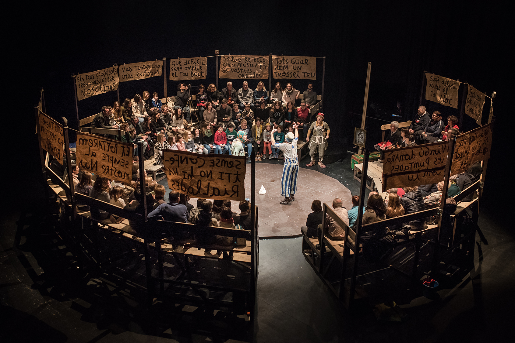 Finalmente, en términos de compromiso y responsabilidad social encontramos piezas como Excalibur de Hermanos Picohueso, una sátira de la sociedad que hace evidentes las estructuras del poder y la política del miedo y del control. Las fronteras y la crisis de refugiados están muy presentes en la propuesta que nos llega desde el País Vasco, Bidaia de la compañía Hortzmuga, un espectáculo de calle con teatro, danza, música y médicos que hace una crítica a la hipocresía de la política europea sobre inmigración.