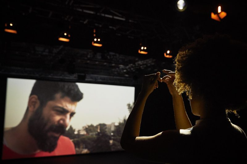 El cine y el teatro forman parte de mí. No siempre lo combino, a veces hago solo cine, a veces hago solo teatro… Pero hace ya muchos años que tengo mi voluntad puesta en esa creación de combinar cine y teatro, y sobre la investigación sobre los límites de la intervención. Para mí el cine es lo mismo que el engranaje dramatúrgico. Todos los dispositivos cinematográficos tienen similitudes con la creación de la dramaturgia. Para mí el cine no es solo el cuerpo virtual ni el teatro el cuerpo presente. Tienen relaciones entre ellos, entre el pasado y el presente. En este proyecto, voy más allá: ofrezco la experiencia de intentar cambiar el hechizo de cine y del teatro. Estamos juntos los espectadores y los actores viendo la película que vamos construyendo juntos. Estamos interfiriendo en esa película, la construimos juntos.