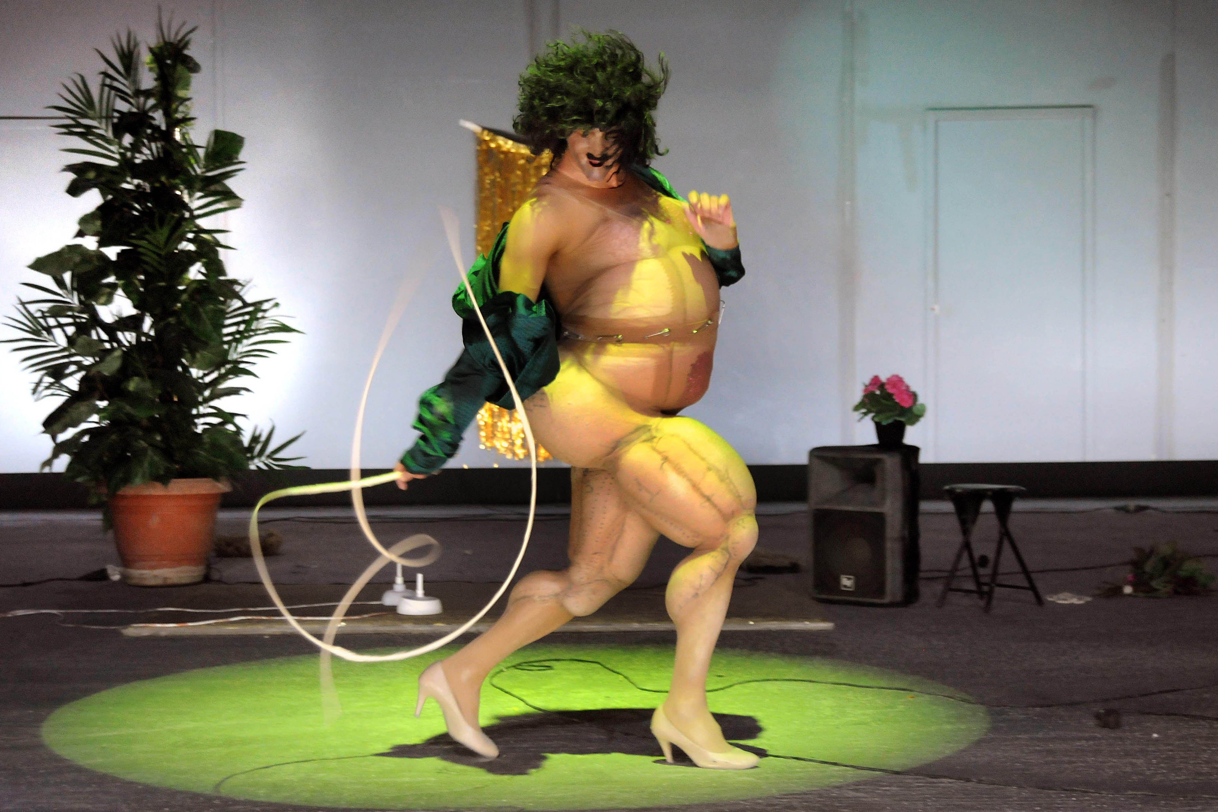 La transformación es inherente en cada uno de nosotros, está escrita en nuestro ADN. No hay momento del día en el que no nos transformemos. Si comparas una foto mía de cuando ere bebé con como soy ahora, salta a la vista que me he transformado completamente. Y si dentro de cuarenta años, si todavía estoy vivo, me comparas con ahora, también me habré transformado. Y si estoy muerto, me habré transformado todavía más. Creo que la transformación es un elemento estructural de nuestra existencia, sin el cual, no existiríamos en la forma en que existimos ahora. Creo que la gente presta atención a las transformaciones extremas porque se pueden identificar con la posibilidad de poder cambiar su forma y su imagen hasta el extremo de convertirse en polvo. Creo que la transformación es clave para el alma porque a través de la transformación encontramos el vocabulario para comunicarnos con los elementos más subconscientes del ser humano. Pero hay otra transformación en la que estoy interesado que es la transformación de los objetos, del tiempo y del espacio. La que tiene que ver con las cosas que no vemos. Cuando salgo a escena, digamos cuando me transformo en la criatura de TITANS, yo siento que me convierto en otra persona. Pero no en otra persona fuera de mí, como si me hubiera perdido en el personaje. Yo de verdad siento que me transformo, es un cambio psicológico. Y esa transformación a su vez transforma el espacio que me rodea en el universo extraño que ve el espectador. Y le hace pensar que tal vez ese mundo exista de verdad: en un sueño, en la mente de alguien, tal vez alguien lo haya imaginado. Estoy interesado en esa clase de transformación que creo que viene de dentro. Podemos llamarlo actuar, hacer una performance, o trascender la experiencia, no lo sé. Creo que en escena hay un cambio de energía. No estoy hablando de perderme o estar poseído, tengo plena consciencia de todo lo que ocurre en todo momento, pero a la vez es como montar una ola que te lleva.