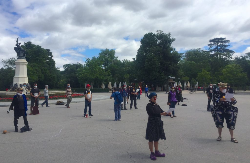 El viernes 12 de junio se presentó en toda Europa un manifiesto apoyado por más de 900 artistas de calle. En Madrid el acto tuvo lugar en El Retiro junto a la estatua del ángel caído