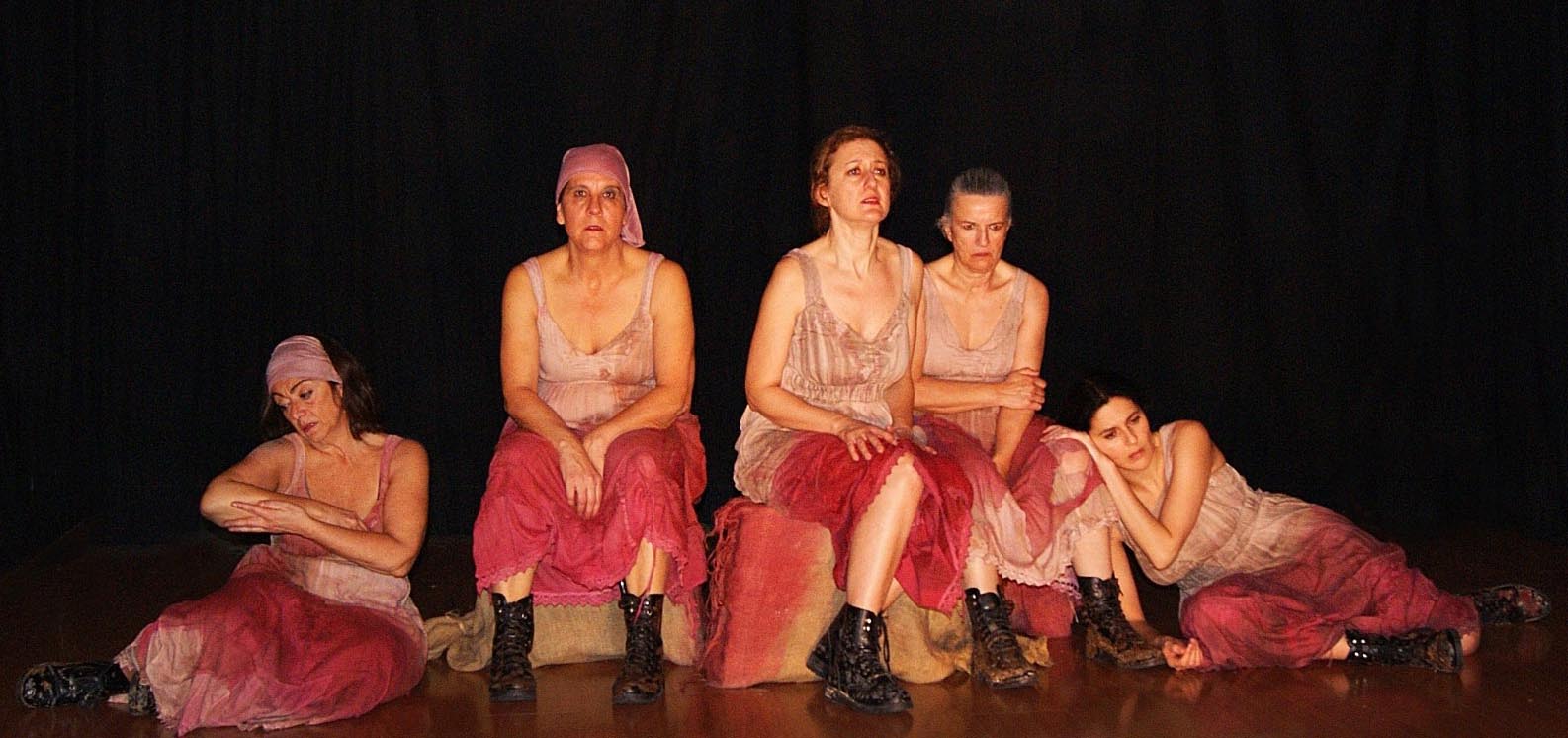 Un coro de mujeres supervivientes a la guerra, con las vestiduras ensangrentadas, camina entre los cuerpos abandonados de un campo de batalla. Aúllan, gritan, gimen