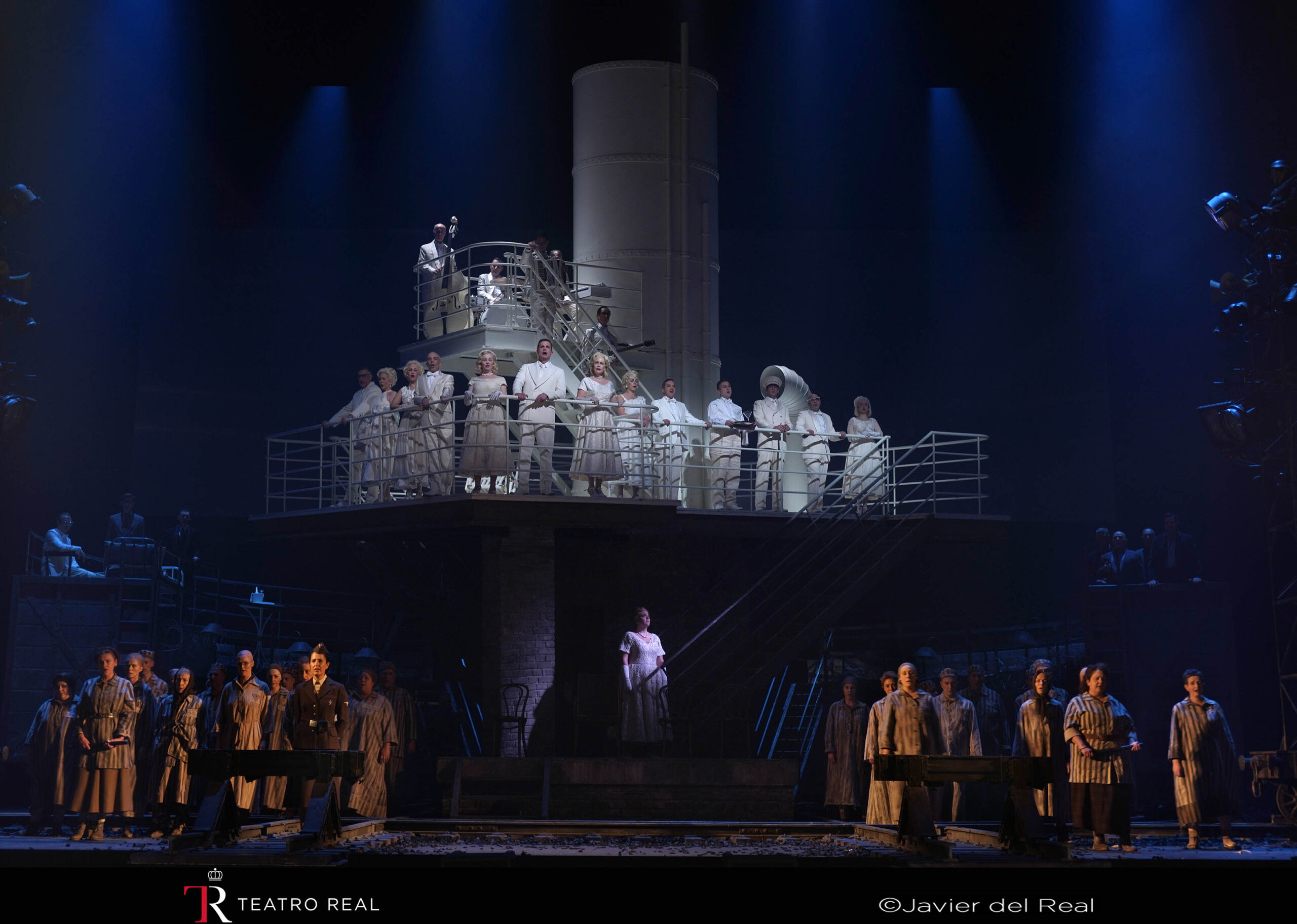 La ópera, cantada en 7 idiomas ─incluyendo el castellano, por el coro-, está estructurada con constantes flashbacks de inspiración cinematográfica-, que articulan el viaje marítimo en la cubierta del barco, con otro, oscuro y siniestro, a los angustiosos traumas de la vida en el campo de exterminio.