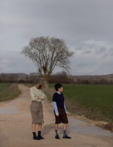 Pues hemos contado con la asesoría de Pablo Chaves para la creación del espacio escénico y ha hecho una cosa que nos encanta. Estamos muy contentas. Queríamos jugar con la idea de estar en un lugar y un tiempo incierto, algo que refuerza el vestuario de Sandra Espinosa. Hay en el texto un juego con los tiempos verbales, con el presente y con el pasado que está a medio camino entre lo que ocurre y el relato de lo que ocurre o lo que podría ocurrir. Queríamos generar una sensación de cierta confusión temporal y el espacio lo refuerza.
