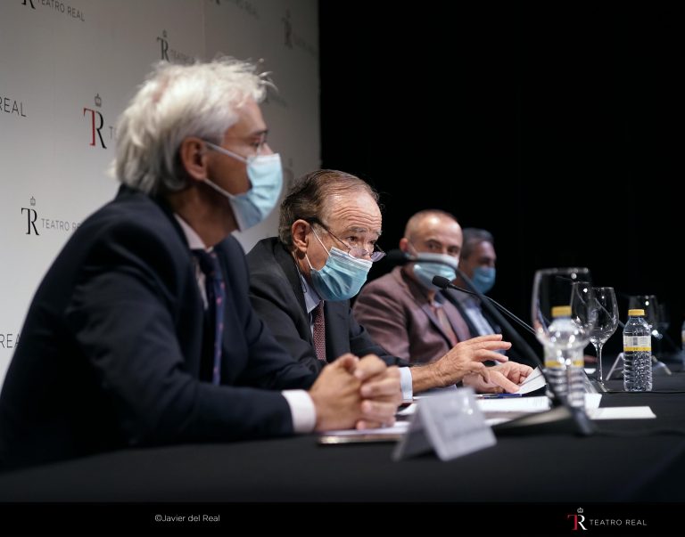 El Teatro Real está recordando a todo el público que se mantiene activo su estricto protocolo de seguridad sanitaria: alfombras desinfectantes, gel hidroalcohólico, oferta de mascarillas y medición de temperatura en todos los accesos al teatro; áreas de movilidad limitadas dentro del edificio; incremento de baños y barras para evitar aglomeraciones; limpieza permanente de todos los espacios públicos (baños, escalinata, barras, etc.), entrada y salida de los espectadores de manera escalonada; asistencia permanente e individualizada al público por parte del personal de sala; servicio médico asistencial durante las representaciones, etc.