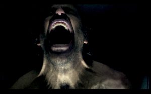 Estoy toda la función metido dentro de un cubo de metacrilato, desnudo, maniatado y de espaldas al público. El único contacto que tiene el público con mis ojos es a través de una pantalla de cine, conectada a un circuito cerrado de video, en la que se proyecta un primer plano de mi rostro. Mi propio aliento hace que el cubo se empañe y el público deje de verme, si no a través de la cámara. Es un montaje claustrofóbico para una situación no menos claustrofóbica.