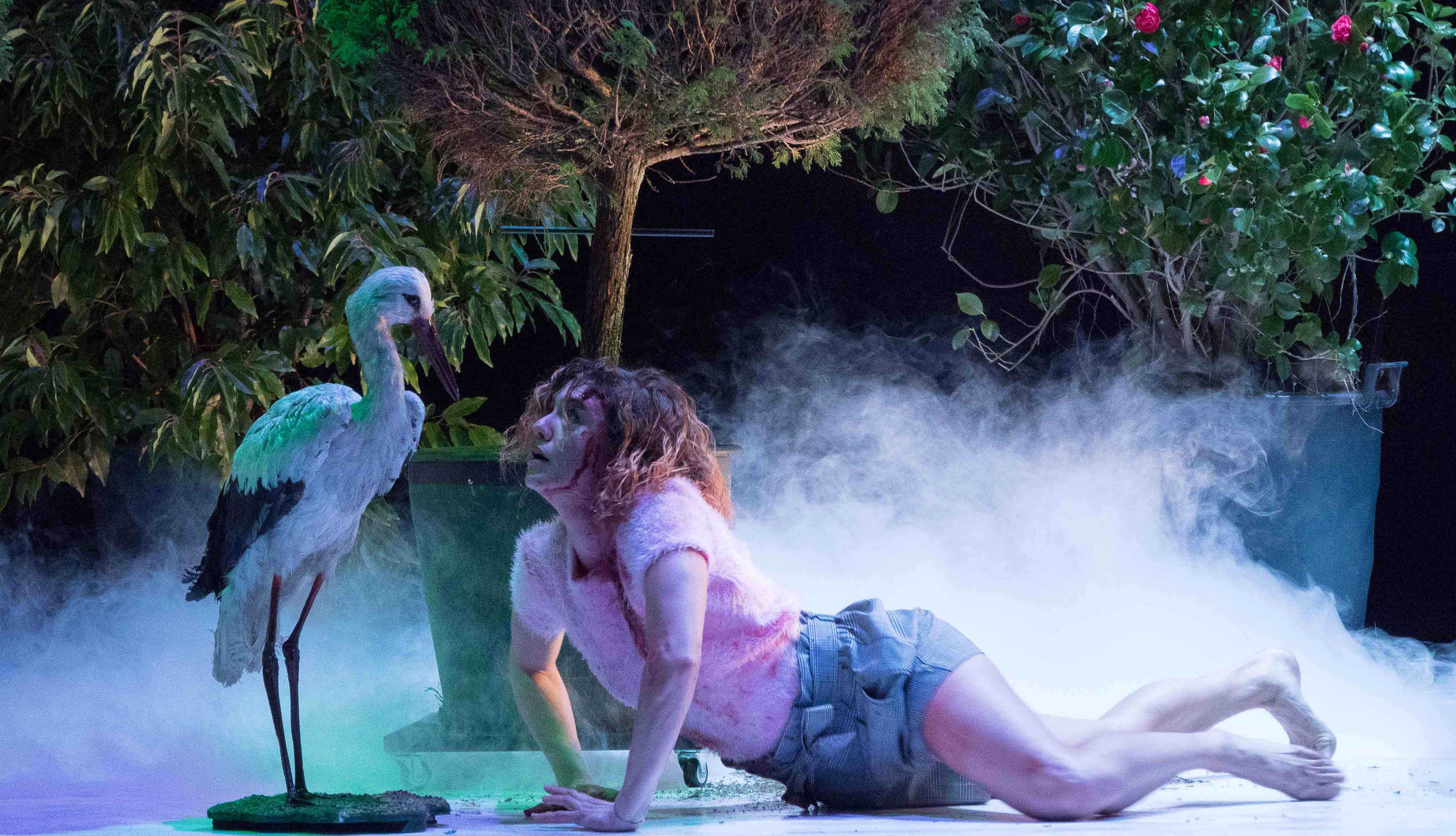 Garage, dice Fernando Epelde, autor del texto que sustenta esta función, “es una investigación poética sobre el cambio de rol de la figura de la mujer en el marco socioeconómico europeo”. Dentro de la trayectoria de Voadora supone un punto de inflexión y un cierre de ciclo. Como explica Marta Pazos, “nosotros tenemos tres líneas de acción en la compañía: espectáculos de nuevas dramaturgias, espectáculos que dialogan con los clásicos y espectáculos en los que trabajamos con personas no relacionadas con el teatro, con colectivos sociales. Garage ensambla esas tres líneas, pues es un montaje de gran formato, como el Sueño de una noche de verano, tiene la parte de nuevas dramaturgias, porque está el texto de Epelde, e incorpora toda esa parte documental sobre un colectivo social diferente a nosotros: las trabajadoras de la industria automovilística”. Además, es un montaje íntimamente ligado al anterior, al Sueño shakesperiano, aunque aparentemente no tengan nada que ver. Pero el Sueño acababa con Paris Lacryma, una actriz transexual que hasta ese momento había sido soldado, saliendo de la acción como en aquella película de Woody Allen, La rosa púrpura de El Cairo, y hablando desde ella misma a los espectadores, situada en la corbata del escenario. Garage empieza precisamente ahí, en la corbata, “cogemos ese legado y las personas que no pertenecen al teatro atraviesan el telón cortafuegos y toman la escena, y con sus historias reales construyen la ficción, una ficción contemporánea”, señala Marta Pazos.
