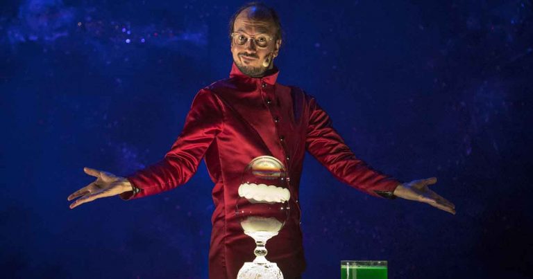 Sumergidos en un viaje a lo imposible, David Vega te da la bienvenida a un espectáculo poético lleno de magia y carcajadas donde la elegancia y el ridículo se dan la mano.