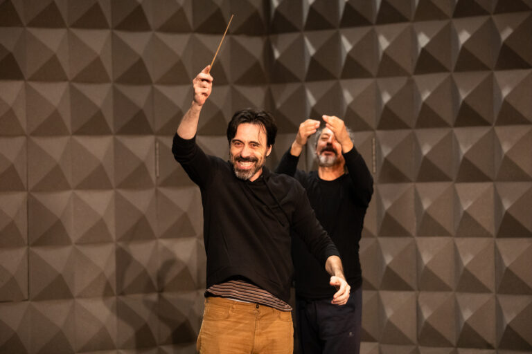 La trama nos presenta a Pedro Berriel, interpretado por Israel Elejalde, un afamado director de orquesta que se enfrenta a la noticia de su propia muerte. Una certeza inminente que hace que la realidad se ramifique y se despliegue, apareciendo visiones donde se confunden rostros y se superponen planos emocionales y espirituales. “La conciencia de la muerte genera una irrealidad muy potente. Es un ‘mood’ que quería explorar porque es algo que comprobé con la muerte de mi hermano Alberto, para mí fue como una corriente arrasadora por lo inesperada que fue, haciéndome pensar en cómo era posible que hubiera muerto y que el mundo continuara. Y creo que esto fue cociendo, de alguna manera, la necesidad de enfrentarme a esta función”, explica Del Arco, que ha querido que La Patética sea un espacio donde hablar de lo que más incomoda, pero sin solemnidades, “todos vamos a morir”. La muerte no es solo tragedia: “también es comedia, absurdo, desconcierto y necesidad de belleza”.