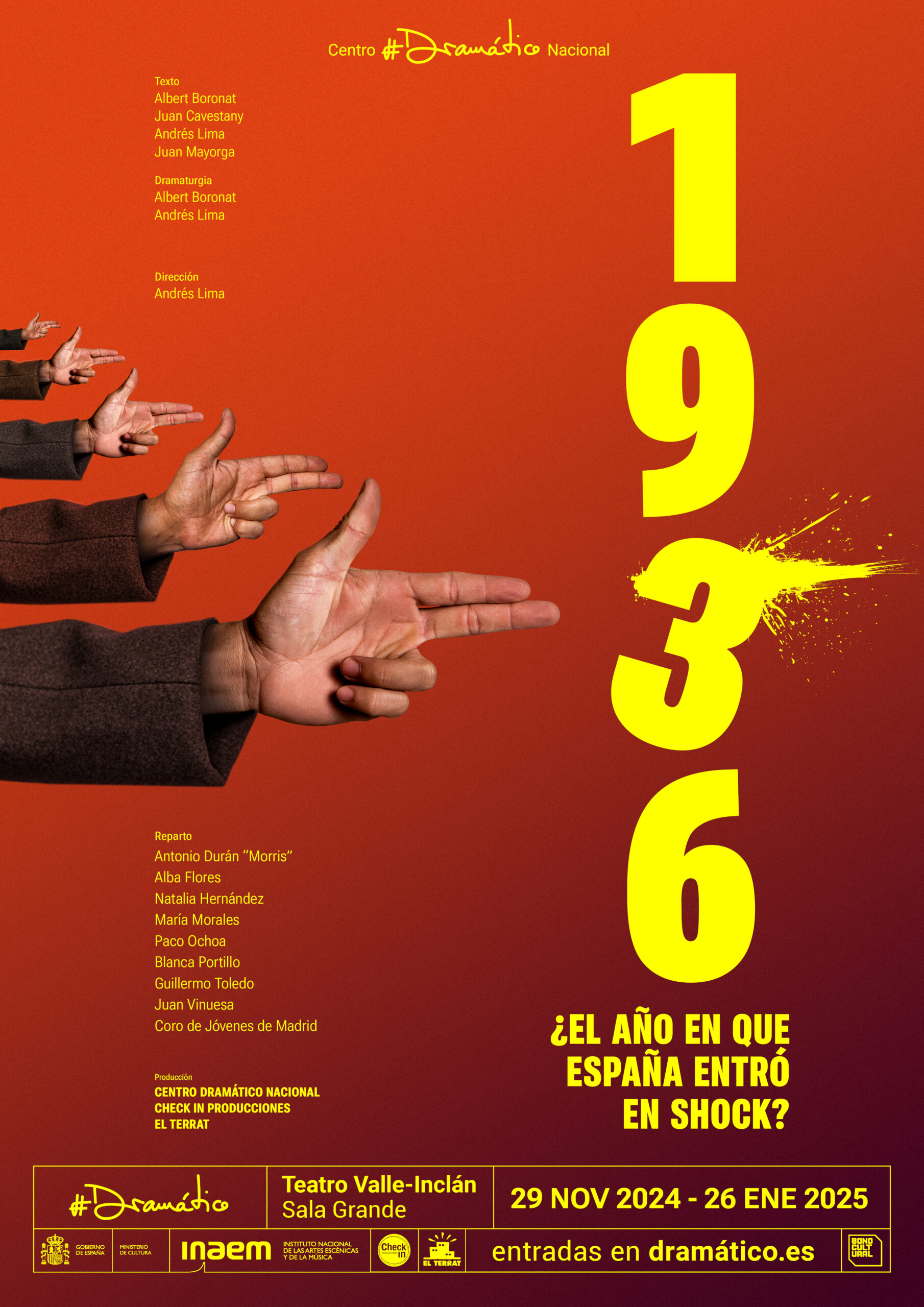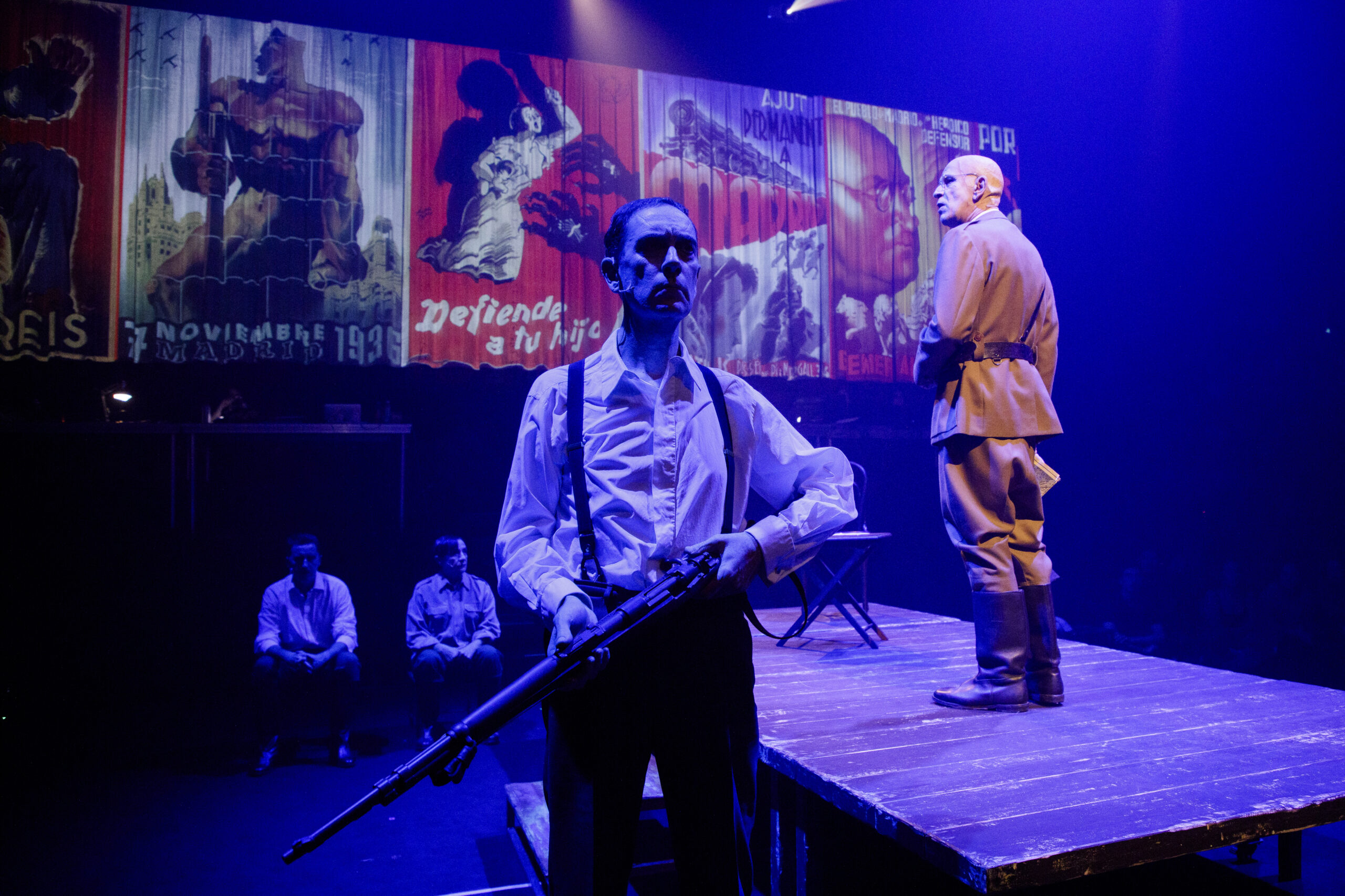 Durante muchos años, la historia oficial en este país ha sido contada desde el prisma de los vencedores (triste palabra), de los sublevados. Y esta falta de educación histórica nos alcanza hasta hoy. Pero la mirada teatral de este montaje no se basa en la dicotomía de los vencedores y los vencidos, de los amigos y enemigos. Nuestra mirada será analítica, crítica y documental. Nuestra responsabilidad es la de reencarnar una guerra. Y una guerra no sólo es un fracaso como sociedad, sino un enorme desgarro emocional. Una guerra civil, entre hermanos, es posiblemente la peor de las guerras. El teatro puede reflejar esa emoción. Quiero que el espectador reflexione, que nuestros adolescentes y jóvenes comprendan, y que todos podamos ponernos en el lugar del otro. ¿ qué se siente bajo un bombardeo, refugiado en una estación del metro, junto con tus vecinos, que posiblemente te denunciaran por tus ideas? ¿ qué se siente huyendo por una carretera de Málaga mientras la armada alemana y los aviones italianos exterminan a lisiados, ancianos y niños? ¿ qué se siente tomando la decisión de arrasar Guernica? ¿Cómo se vive en una trinchera a la espera de la muerte? ¿Qué es un ‘paseo’? ¿Qué es el terror?