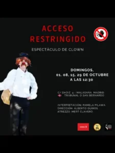 Este espectáculo nos sumerge en un mundo absurdo lleno de fronteras, señalizaciones y restricciones, y una payasa buscando a la vez una vía de escape y un espacio de seguridad dentro de ese caos.