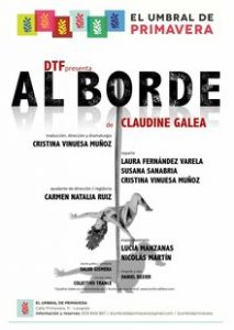 Una mujer, escritora, observa esa foto durante un año para no pasar por alto esa violencia que circula sin pudor por las redes. Al cabo de un año, nace Al Borde. “Pensaba que escribiría sobre la tortura, la violencia o la guerra pero nada de eso”, dice la autora Claudine Galea. De esa imagen, le nacen otras, las suyas: las de su madre, su amada. Imágenes de deseo, de dolor. En definitiva, sus ‘correas’, como la que sostiene la soldado. El texto empieza así: soy esa correa en realidad. El reto de este texto al límite que descoloca ciertamente y perturba, alejado de las convenciones, asume que las limitaciones, heredadas o elegidas y el dolor, asumido, forma parte del ser y que además está relacionado muchas veces con el deseo y la relación al otro. Este monólogo es sin duda uno de los textos más perturbadores, arriesgados e inteligentes de principios del siglo XXI. Su formato y su estilo, un monologo de diez páginas, casi sin puntuación, escrito como un pensamiento en constante movimiento, llevan al espectador hacia un vértigo que hila imagen-sensación-reflexión de manera que el espectador pase del rechazo a la atracción hipnótica.