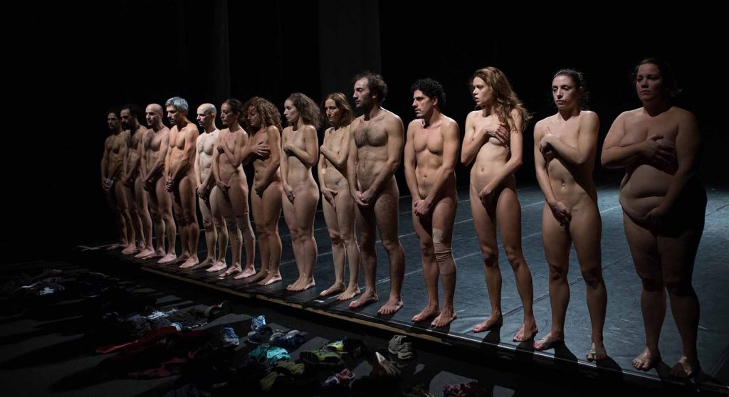 Todo este proceso ha comenzado desde esa renuncia, creándose una extraña atmósfera que no nos ha abandonado y que ha hecho que el espectáculo se genere solo. En Bestie di scena hay una comunidad que huye, expulsada del paraíso al igual que Adán y Eva, llegando a un lugar del pecado, el mundo terrenal, lleno de trampas y tentaciones. Se engañan a sí mismos para vivir, encontrando en ese escenario todo lo que necesitan: el odio, el amor, el camino, el miedo, el mar, el naufragio, la zanja, la tumba donde llorar a los muertos, los restos de una catástrofe…