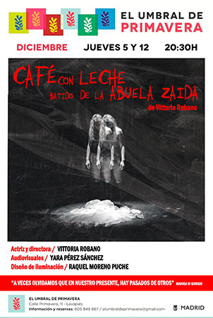 Café con Leche Batido de la Abuela Zaida, es una obra que explora los rituales cotidianos y su capacidad para revelar lo espiritual en lo doméstico. A través de una narrativa fragmentada, sin un solo cuento definido, pero con múltiples historias implícitas, seguimos el viaje de un alma que cae en el mundo de los muertos, sin comprender su nueva realidad. Una voz misteriosa la guía, y el personaje se enfrenta a la incertidumbre de si esa voz proviene de su interior o del exterior. A lo largo de esta travesía, cada situación que vive la transforma, en un proceso de constante evolución.