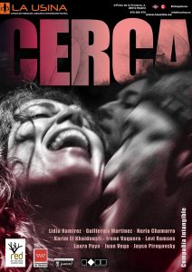 Cerca, cuerpos atravesados por palabras, palabras que hablan del deseo, del miedo, del amor… Estar cerca, tu cuerpo cerca, tu imagen cerca, tu piel cerca, tus fantasías, cerca… Un poema visual sobre los miedos en las relaciones de pareja, un ejercicio de apropiación del espacio con los cuerpos, una danza de afectos, de inseguridades, trágica, sensual, tragicómica, en búsqueda de sí mismos.¿Qué somos? Una pareja, una zona segura, un lugar seguro. ¿Cuál es tu zona segura? ¿Cuál es la nuestra? ¿Cuál es la mía? ¿Cuál es la zona segura de los que están aquí? ¿Dónde estamos a salvo de los otros, o de nosotros mismos?