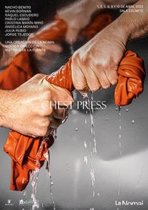 Chest Press es un proyecto teatral de creación colectiva y de autoficción generacional, que pone el punto de mira en la relación de una generación joven, un grupo de personas en la flor de la vida, con el ejercicio físico y con el cuerpo como objeto matérico dentro del mundo. Un análisis del cuerpo como organismo celular que, algún día, dejará de funcionar. Chest Press es la presión en el pecho.