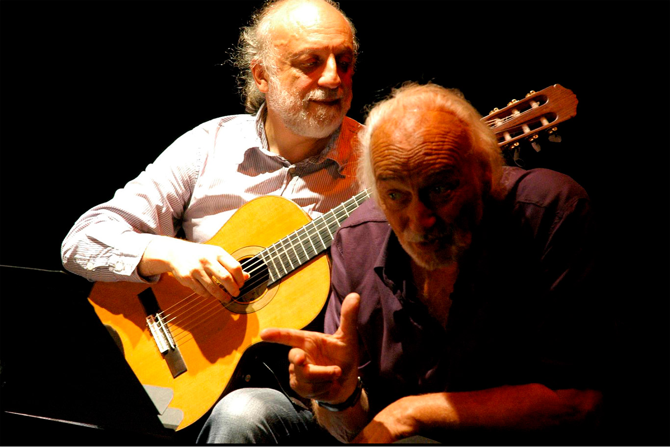 El acompañamiento de José Luís Merlín en la guitarra se sostiene, inevitablemente, por la improvisación a partir de temas propios y la inflexión y modulación de la voz del actor, emplea una técnica similar a la de los guitarristas flamencos pero apoyada por piezas propias de inconfundible raíz sudamericana.