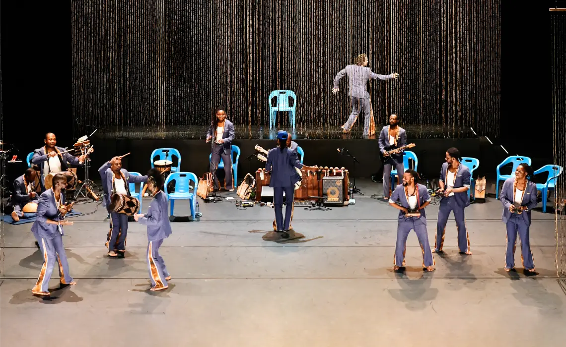 De este trabajo surge un universo novedoso de sonido e imagen, interpretado por una orquesta de más de una docena de músicos del Congo y la emotiva voz del contratenor sudafricano Coco Díaz, que inspiran la danza mestiza y vibrante de Platel. Y aunque sus ritmos propendan a la alegría contagiosa, sutiles elementos, como una cortina dorada que destaca en el escenario, creada con casquillos de munición por el artista congoleño Freddy Tsimba, recuerdan un pasado de guerras en el continente africano.