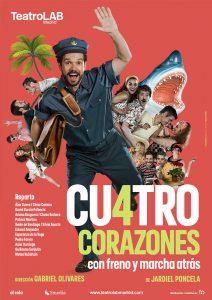 Cuatro corazones con freno y marcha atrás es el nuevo espectáculo de Gabriel Olivares (Burundanga, El Nombre) junto a la Compañía TeatroLab Madrid (Our Town Candidata a los Premios Max 2016 al mejor Espectáculo Revelación).