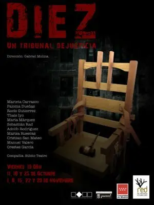 Basado en la novela de Reginald Rose, Diez, desnuda la violencia que provocan los profundos prejuicios, temores y conflictos de un grupo humano encerrado en un callejón sin salida, en busca de la verdad. Los espectadores podrán desplazarse por la escena para observar y juzgar ellos mismos lo que ocurre en esa habitación. Van a asumir una gran responsabilidad…