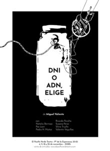 La obra DNI o ADN, elige es la octava propuesta escénica del grupo DoceCanciones. Se trata de una pieza en la que, en el transcurso de una conversación mantenida durante toda una noche en una habitación de hotel, van surgiendo verdades difíciles de aceptar, recuerdos casi olvidados, sentimientos encontrados, actitudes crueles y egoístas, decisiones generosas.