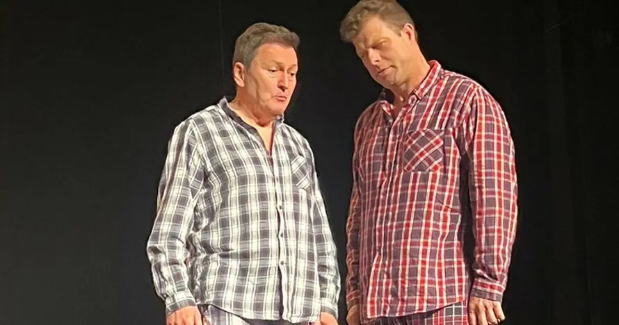 Para quien se crea que la obra Dos hombres en pijama de cuadros pretende mofarse de alguien concreto -esté entre el público o no ese alguien, pues los hay de piel muy fina-, estos dos personajes son sencillamente simples y podréis mofaros sin que la conciencia os corroa.