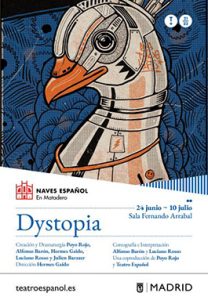 Dystopia es un constante acto de equilibrio entre lo trivial y lo sublime que cuestiona alegremente nuestra condición humana. El espectáculo se burla de todo tipo de mandatos y asignaciones para profanarlos mejor. Desactiva los miedos, los excesos y las posturas a través de la risa interpelando al espectador: «¿De dónde venimos? ¿Hasta dónde llegamos? ¿Cuál es el destino de este ser humano?».