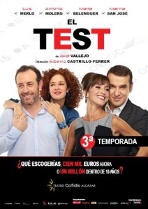 Esto es lo que les pasa a un matrimonio de clase media con problemas económicos -Héctor (Antono Molero) y Paula (Marina San José)- cuando Toni (Luis Merlo), uno de sus mejores amigos, les plantea el test de personalidad que ha elaborado Berta (Marta Belenguer), su actual compañera, una psicóloga muy exitosa y mediática. La pregunta es la siguiente: ¿qué prefieren, cien mil euros ahora mismo, o un millón de aquí a diez años? Así de simple, así de difícil.