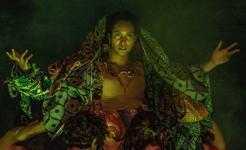 La puesta en escena plantea un juego con los códigos de la tragedia clásica resignificándolos a través de los signos utilizados por Jason Russell (el lenguaje audiovisual, las redes sociales y la danza) y por toda una exploración en modelos alternativos de movimiento y baile, los cuales surgieron de una investigación coreográfica paralela, basada en los temas de raza, inmigración y colonialismo.