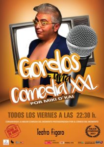 Miki d´Kai nos presenta Gordos que, como su propio nombre indica, una Comedia XXL. No tan solo porque sea la talla de ropa del artista, sino porque su talla como Cómico y Artista es la más grande que pueda existir.En una época donde el culto al cuerpo está a la orden del día, Miki d´Kai te convence de porque hay que volver al Colesterol, de por qué ser Gordo es una filosofía de vida y la clave de la Felicidad.