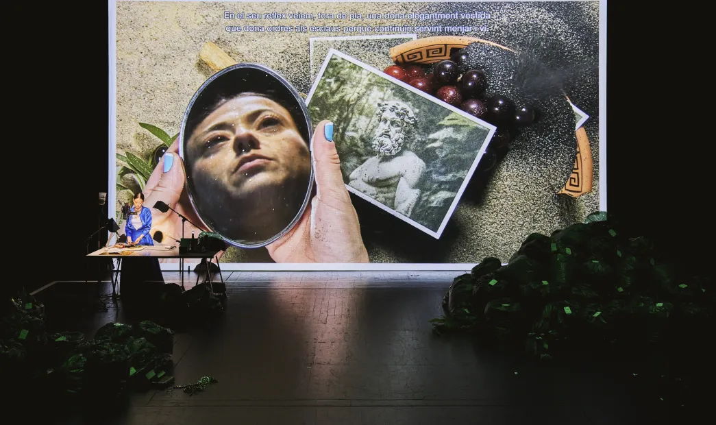 Todo esto sucede en medio de un espacio a medio camino entre un archivo, un laboratorio y un vertedero, donde la intérprete encuentra, manipula y disecciona objetos, restos y basura generados a lo largo de milenios de relaciones amorosas. Historia del amor utiliza recursos de video en vivo, performance, objetos y teatro físico para construirse frente al espectador.