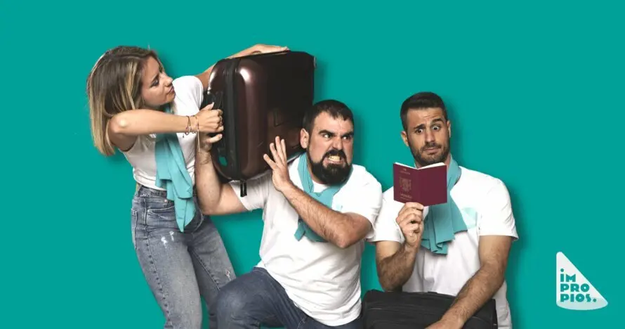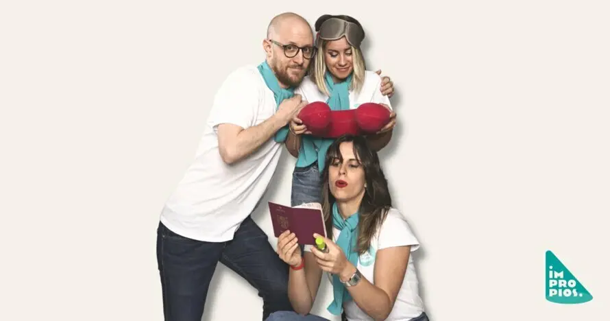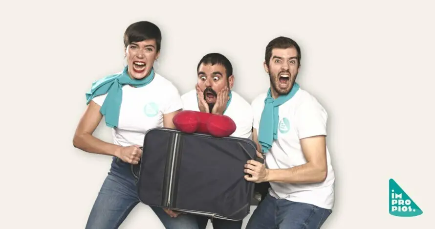 Bienvenidos a este vuelo de Impropios Airlines destino… cualquier lugar. Por favor, apaguen sus teléfonos móviles, enciendan sus risas y pónganse cómodos para un viaje muy especial. Nuestra tripulación se encargará de amenizarles el trayecto con escenas teatrales 100% improvisadas, sin tren de aterrizaje ni torre de control.