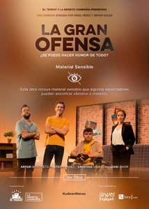 La gran ofensa interpela al espectador preguntándole si existen los límites del humor. ¿Hay que procesar a alguien por contar un chiste?, ¿Debemos censurar la comedia?, ¿Se puede hacer humor de cualquier tema?