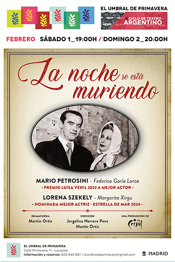 Allí comprueba que el teatro es un ritual de invocación: atraído por la gran interpretación de su actriz predilecta, Federico García Lorca aparece para festejar el éxito y celebrar su amistad, impulsándola a tomar una importante decisión.