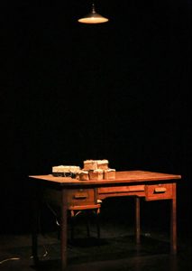 Hemos llegado hasta aquí Miguel Torres y yo mismo, desde 1989, escuchando la vieja cinta, escuchando al viejo Krapp. Hoy la ponemos de nuevo a girar y recuperamos no la melancolía sino la satisfacción de volver al andén de la estación, sentarnos en el banco del viejo canal o permanecer en el muelle esa noche de marzo y al final, tomar la barca en el lago hasta quedar encallados entre las cañas. Volver como lo hacen los aniversarios, solo que esta vez lo es de Torres-Krapp. Y sobre todo volver a Beckett, retornando a un destino sin fin, con el que vernos cara a cara con la esencia del teatro. Ningún efecto espectacular para atenciones distraídas. Nada que camufle la materia que le da forma. El teatro ahí, sin más abalorios que el brillo de los ojos del viejo Krapp en la penumbra de su cuchitril. A la espera de que ella abra los ojos para dejarle entrar. Escuchando palabras memorables que un día pronunció, hoy ridículas pretensiones. Volver a esas certezas, volver a esas incertidumbres, materia de escritura con la que hacen su obra Krapp-Beckett. Con ellos regresamos a esa especie de pureza, contaminada de desperfectos, que es nuestra memoria. Allí la esencia de este teatro, del teatro. Alguien, nosotros mismos, convirtiendo lo que oímos y vemos ahí fuera, en la escena, en una escucha y un mirar pasado. Insistir es repetir, repetir por haber fracasado. Este ha sido el proceder de nuestro deseo por volver a La última cinta de Krapp.