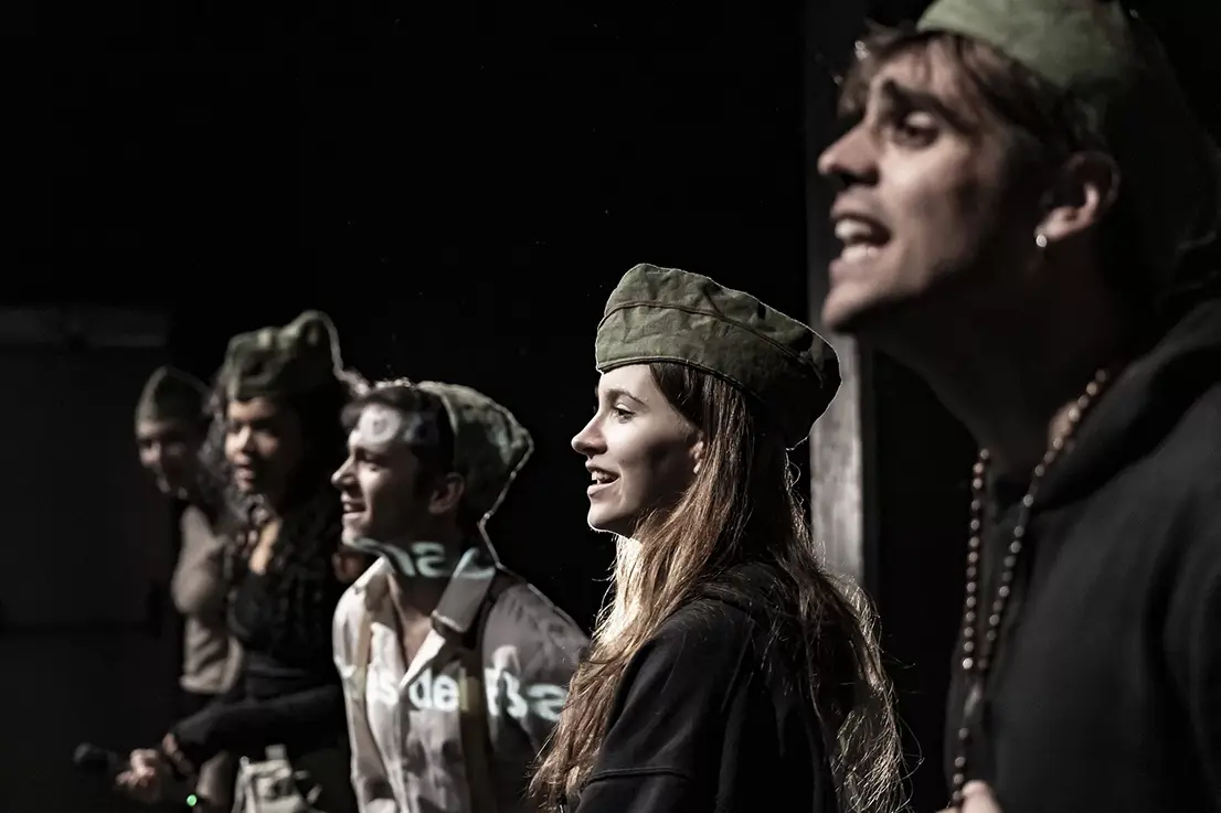 Lagunas y niebla nace dentro del marco Paisaje de devastación, un proyecto internacional que cuenta con la participación de los países de Grecia, Alemania, Ucrania y la propia España, representados por LaJoven. Países en los que lo colaborativo se ha usado como arma de resistencia ante la barbarie y la injusticia a lo largo de sus historias como sociedades y como naciones. Este proyecto tiene como punto central el encuentro de jóvenes con su memoria y la de sus países, a través de talleres con el teatro como herramienta de colaboración, resistencia y memoria.