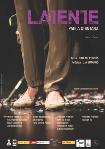 Latente, de la actriz, bailarina y creadora Paula Quintana, es un espectáculo de teatro-danza cuyo anhelo es acercar el ser humano al ser humano. Esta historia ocurre en medio de nosotros, formamos parte de ella, podría ser cualquiera de los aquí presentes. Un individuo cualquiera y su interesante uso del texto, la danza contemporánea, el flamenco y el teatro físico, que nacen de la necesidad de comunicar en cada momento. Lenguajes que suman sus virtudes y completan las carencias los unos de los otros. Estilos cuya intención no es fusionarse sino complementarse entre sí. Sus límites y fronteras desaparecen, permitiendo transitar por ellos con total naturalidad.