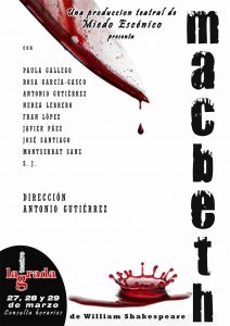 Este espectáculo presentado por Miedo Escénico se adentra en el mundo desasosegante de una de las tragedias más cruentas y oscuras de Shakespeare: la conocida como la tragedia escocesa o la tragedia de Macbeth. Es una obra que ha sido muchas veces llevada al teatro, al cine e incluso a la ópera.