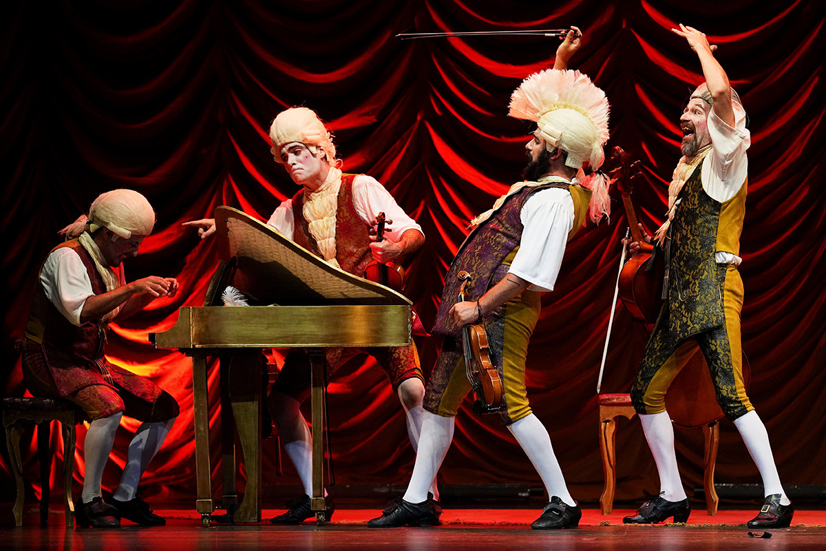 Maestrissimo es un espectáculo ‘allegro e molto vivace’, a mitad de camino entre el concierto de cámara, la comedia satírica y el retrato de época, en el que se muestran, al más puro estilo Yllana, las aventuras y desventuras de un cuarteto de cuerdas en un período indeterminado entre los siglos XVII y XVIII (Barroco y Neoclasicismo).