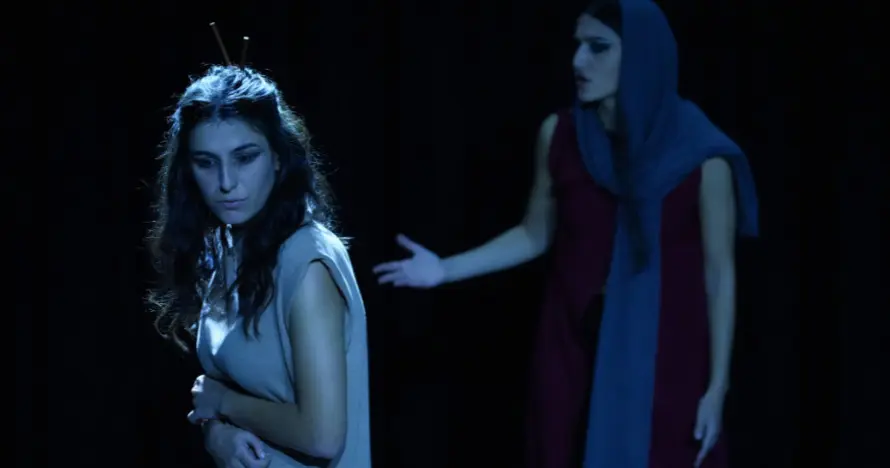 Solo tres personajes narran la historia: la propia Medea, Jasón y Hécate. Todos ellos interpretados por mujeres. Medea, encerrada en una jaula, verá como es juzgada, acusada y atacada por la persona que más quiere y un ente divino que le ronda. El papel del espectador será el de juez. Se convertirán en los dioses olímpicos que de una forma pasiva dictaminan el destino fatal de Medea. Esta adaptación busca, con un estilo minimalista, actualizar el género clásico, hallar los nuevos mensajes en las antigüas escrituras. Sorprender a un público acostumbrado a las lecturas griegas con una visión moderna del mito, pero sin perder la esencia del mismo.