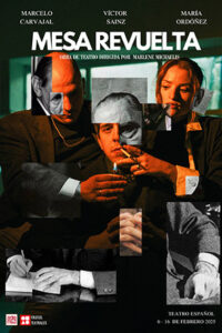Mesa revuelta tiene como hilo conductor una carta en la que Buero Vallejo defiende su opinión tanto acerca del estado del realismo en su época como sobre el propio público que llenaba los teatros. Sin embargo, a pesar de la distancia temporal, el autor nos sorprenderá por la actualidad de sus comentarios acerca de la ética y la estética del arte contemporáneo para hacernos reflexionar sobre el futuro del teatro actual. Pero en Mesa revuelta el autor no viene solo, sino copiosamente, en concreto, multiplicado por tres. Así, otro Buero Vallejo, el segundo, acogido por el calor del público, le dedica preguntas al espectador sobre el arte de escribir para una entelequia, mientras el tercer Buero Vallejo trae dramas suyos al espacio que son, al fin y al cabo, la esencia de su labor artística.