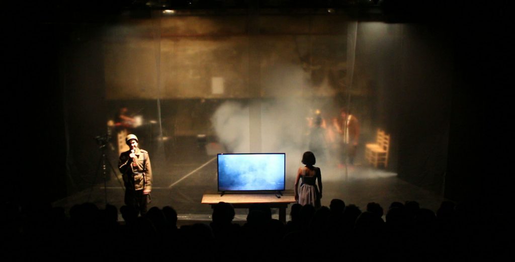 La obra, filmada en vivo en un espacio oscuro que veremos a través de un televisor, invita a cuestionar sobre lo que vemos y escuchamos, y preguntarnos que queremos ver, que nos quieren mostrar y que queda camuflado bajo el control de los medios.