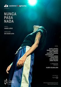 Nunca pasa nada es un proyecto teatral encarnado por ocho jóvenes intérpretes de entre 18 y 24 años, que pretende ser una experiencia de crecimiento y formación desde la práctica para su consolidación como profesionales de las artes escénicas. Asimismo, el proyecto promueve la incorporación de los públicos jóvenes al teatro y la sensibilización de la sociedad en general y de la comunidad educativa en particular ante las dificultades, las inquietudes y las problemáticas propias de la adolescencia.