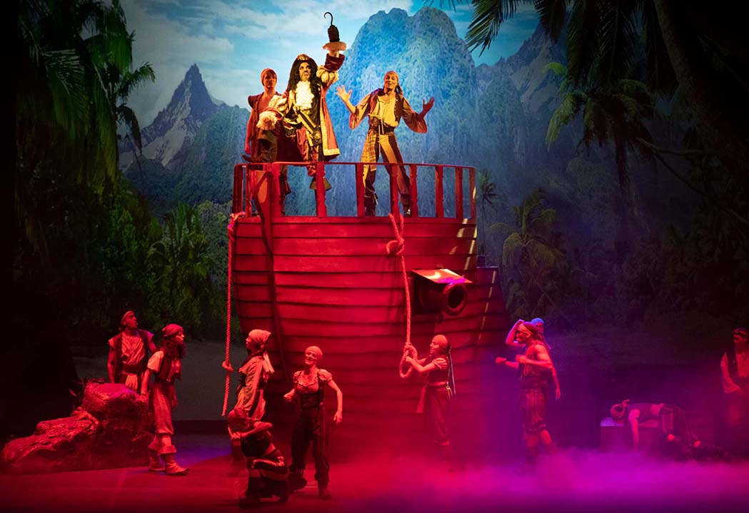 El campamento de los ingeniosos niños perdidos con sus instrumentos y atracciones de juegos sacarán las sonrisas de los más pequeños. Nos sumergiremos en el fondo del océano para conocer a las sirenas, y descubriremos los enigmas de los indios, sus secretos y habilidades de lucha.