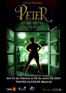 Después de recorrer el mundo con más de 5.000 representaciones y 5 millones de espectadores, regresa a España Peter, El Musical by Theatre Properties, catalogado como el Mejor Musical Familiar del año en España de gran formato en el Teatro Alcázar de Madrid. Un musical para toda la familia con una nueva puesta en escena trabajada, detallista y colorista con la última tecnología teatral para recrear la magia de esta historia legendaria. Sin duda unos de los musicales españoles más exitosos de todos los tiempos.