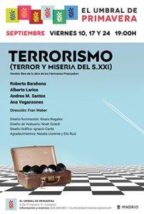 La obra, en realidad, no habla del terrorismo, entendido como el uso sistemático del terror que es el sentido que solemos darle, sino más bien, del terrorismo social, como el uso sistemático del terror que nos hacemos los unos a los otros por miedo a que nos hagan daño.