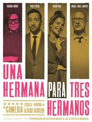 Tres hermanos. Stop. Dos hombres y una mujer. Stop. Se quieren pero se odian. Stop. Esperan la visita de una hermana nueva. Stop. Una hermana secreta. Stop. Tienen un enigma que resolver si quieren recibir la herencia de su difunto padre. Stop. Familia, enigma y una herencia… una combinación que nunca se sabe cómo puede acabar. Stop.