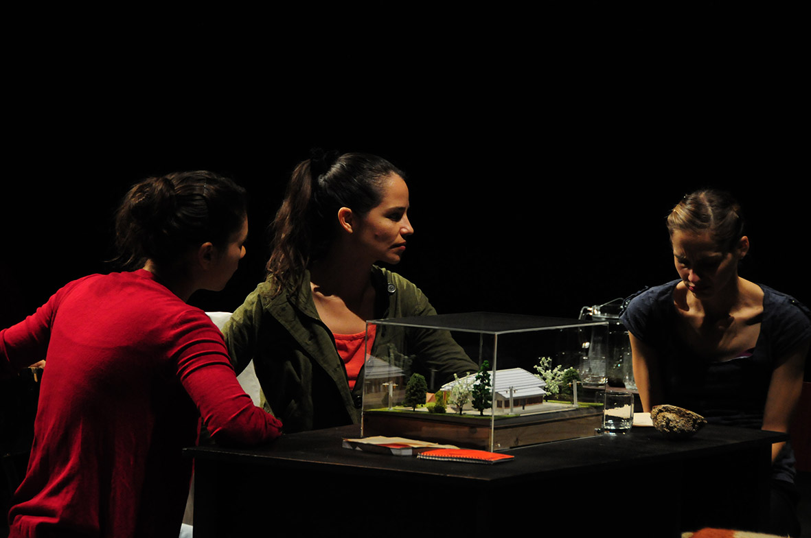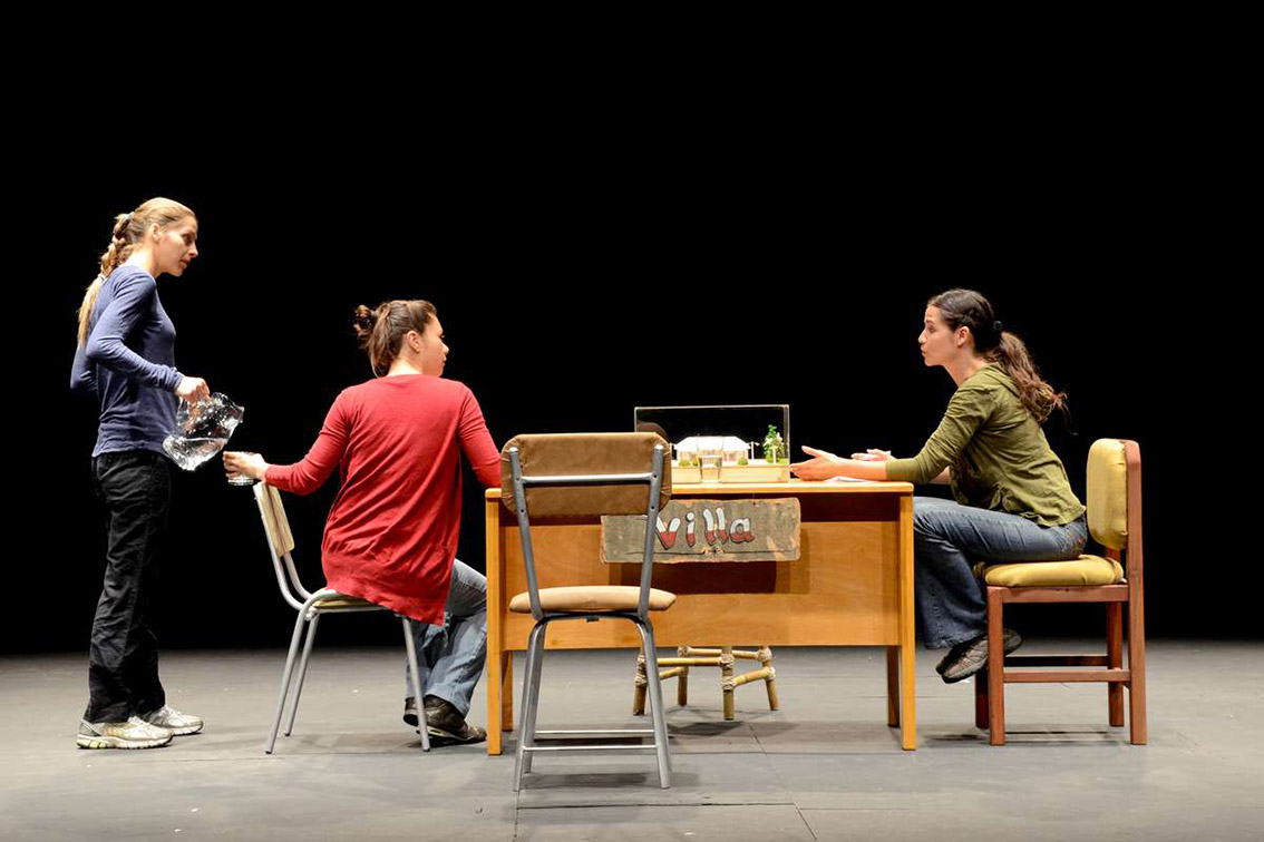Y de eso va Villa, la obra de Guillermo Calderón, de cómo gestionar la memoria, de cómo enfrentarla, de las contradicciones que supone, de los sentimientos que pone en juego. Tres mujeres debaten diferentes alternativas para remodelar Villa Grimaldi. Las opciones son reconstruir la casa demolida por los militares o construir un museo moderno. El problema es difícil de resolver y expresa las discusiones reales que atraviesan las organizaciones de derechos humanos que intentan defender la memoria de las víctimas de la dictadura. Montaje de escueta teatralidad que también dirige Calderón con el estilo que ayudó a darlo a conocer como una voz escénica genuina, las tres mujeres protagonistas, que no se conocen entre sí, son interpretadas por tres actrices bárbaras, sin que les haga falta aparataje alguno, ni vestuarios, ni maquillajes, ni escenografías ni espacios sonoros. A pelo, con la crudeza que el propio tema de la función expone. Y esa coloquialidad poética que supura el texto, ese ritmo de conversación impulsiva que arde en el cuerpo y la palabra de las intérpretes.